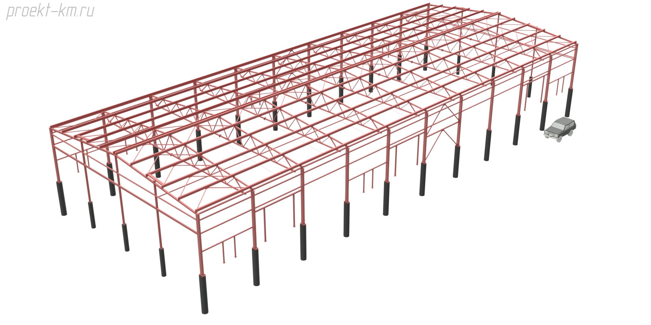 - Хоть в ТЗ было — спроектировать для холодного исполнения — заложил необходимые металлоконструкции для варианта из сэндвич панелей. А именно необходимы затяжки по прогонам, чтобы их не выгибало в бок, что может нарушить герметичность сэндвич панелей.