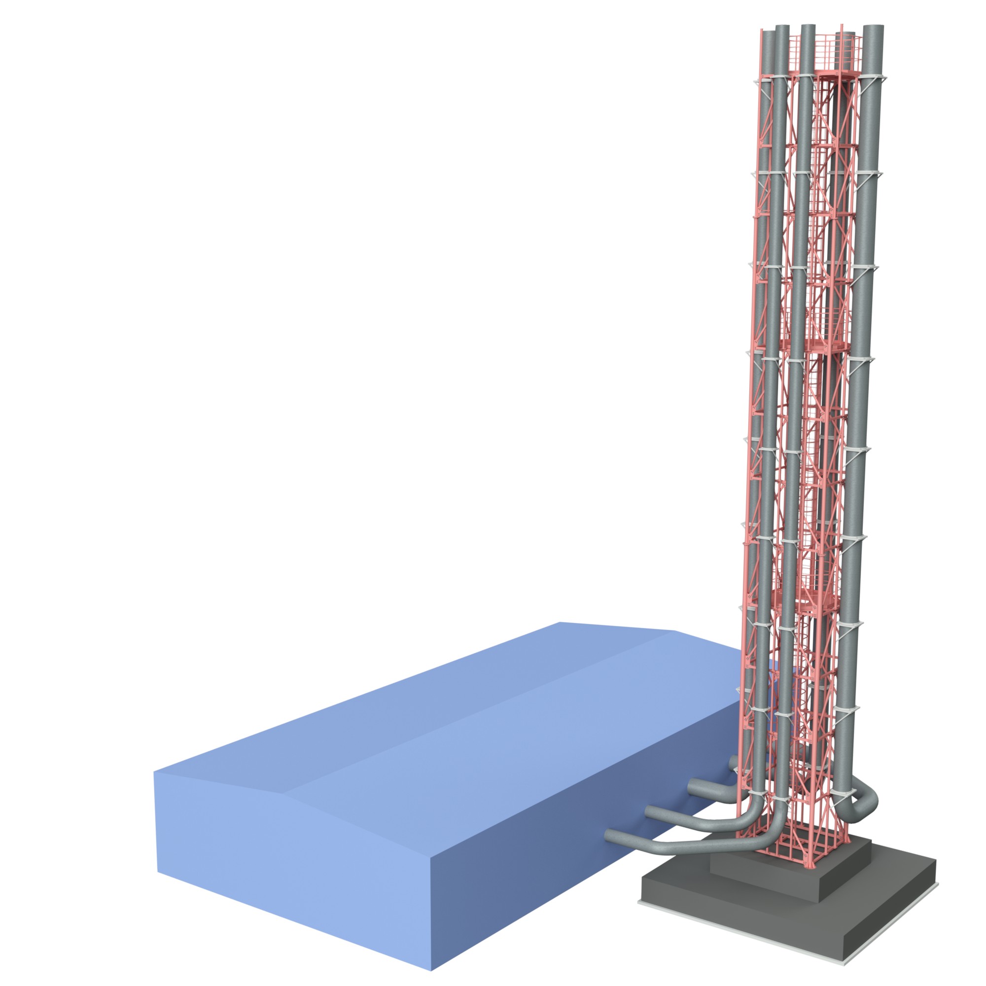 - Количество дымовых труб 5шт — распределены по периметру так чтобы сохранить симметричность нагружения.